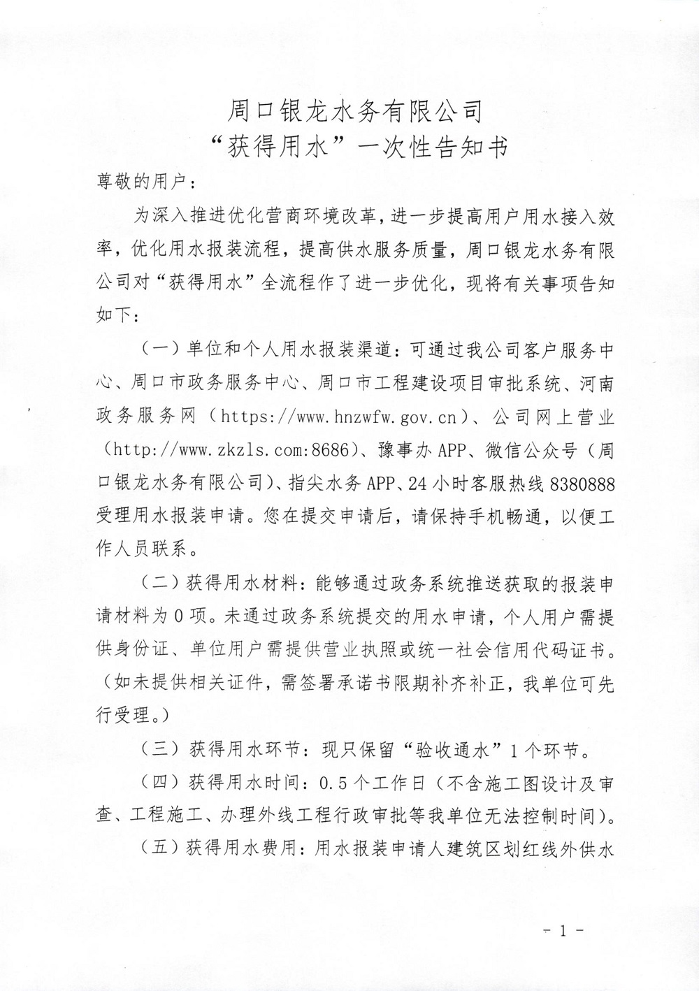 周口銀龍水務(wù)有限公司關(guān)于部分特業(yè)用戶辦理退費(fèi)的公告按照《河南省城鎮(zhèn)供水價(jià)格管理實(shí)施細(xì)則》和《周口市市場(chǎng)監(jiān)督管理局責(zé)令退款通知書(shū)》要求,特種用水類別不包括足浴、美容美發(fā)、養(yǎng)生休閑會(huì)所等行業(yè),經(jīng)公司研究決定...